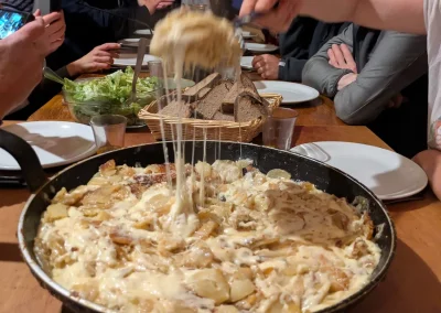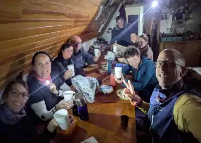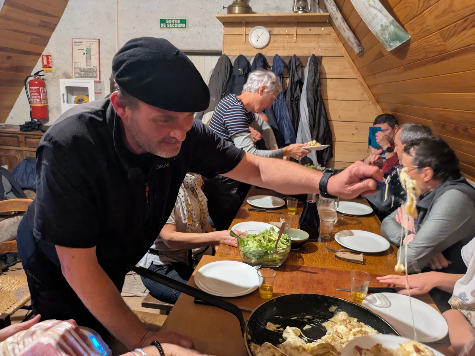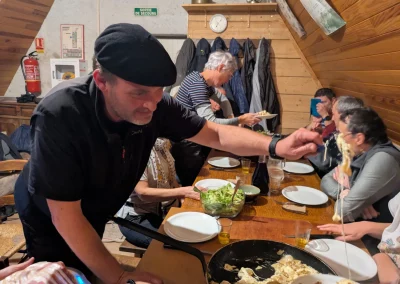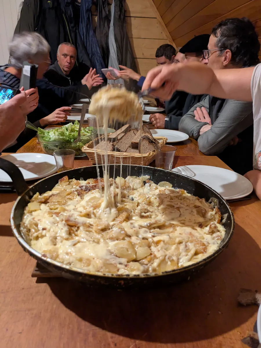 Pour ce premier jour, on aura assuré l’essentiel : monter à Meije Costes (où la notion de refuge aura pris tout son sens) et y passer un très chouette moment ! Soirée exceptionnelle là-haut avec un Anthony « on fire » qui nous aura régalés 😋 avec sa truffade (as usual).