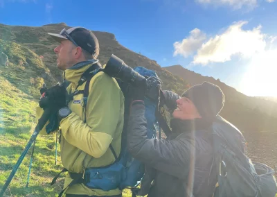 Mais le clou du spectacle aura bien eu lieu le dimanche ! Comme prévu, le vent de nord s’est levé dans la nuit et aura bien nettoyé le ciel ! Il faisait frais mais on était bien couverts ! Et clairement on en a pris plein les yeux : on a entendu et vu plein de cerfs bramer. Ils étaient accompagnés de biches, daguets et bichettes et c’était magique. Et le reste de la faune sauvage n’aura pas été en reste puisqu’on a aussi vu des marmottes (et c’était surement le dernier créneau avant le gros dodo), plein d’oiseaux (vautours fauves, corvidés, rapaces), des insectes et même une salamandre. Vraiment on aura été gâtés…