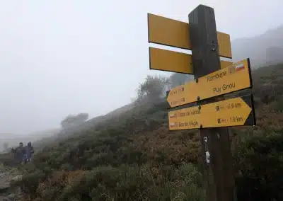 Clairement, la météo annoncée pour le samedi n’était pas top (pour rester poli). J’ai donc adapté le programme et, plutôt que de partir de Mandailles, j’ai opté pour la version sécu et on s’est directement retrouvés à Font d’Alagnon le matin. Alors certes on y aura un peu perdu en terme de rando mais, avec du recul et au vu des conditions du jour sur le terrain, je ne regrette pas ce choix…