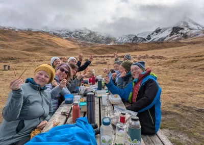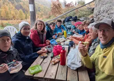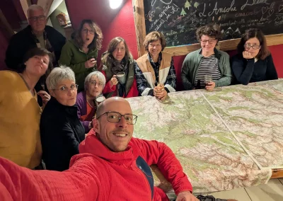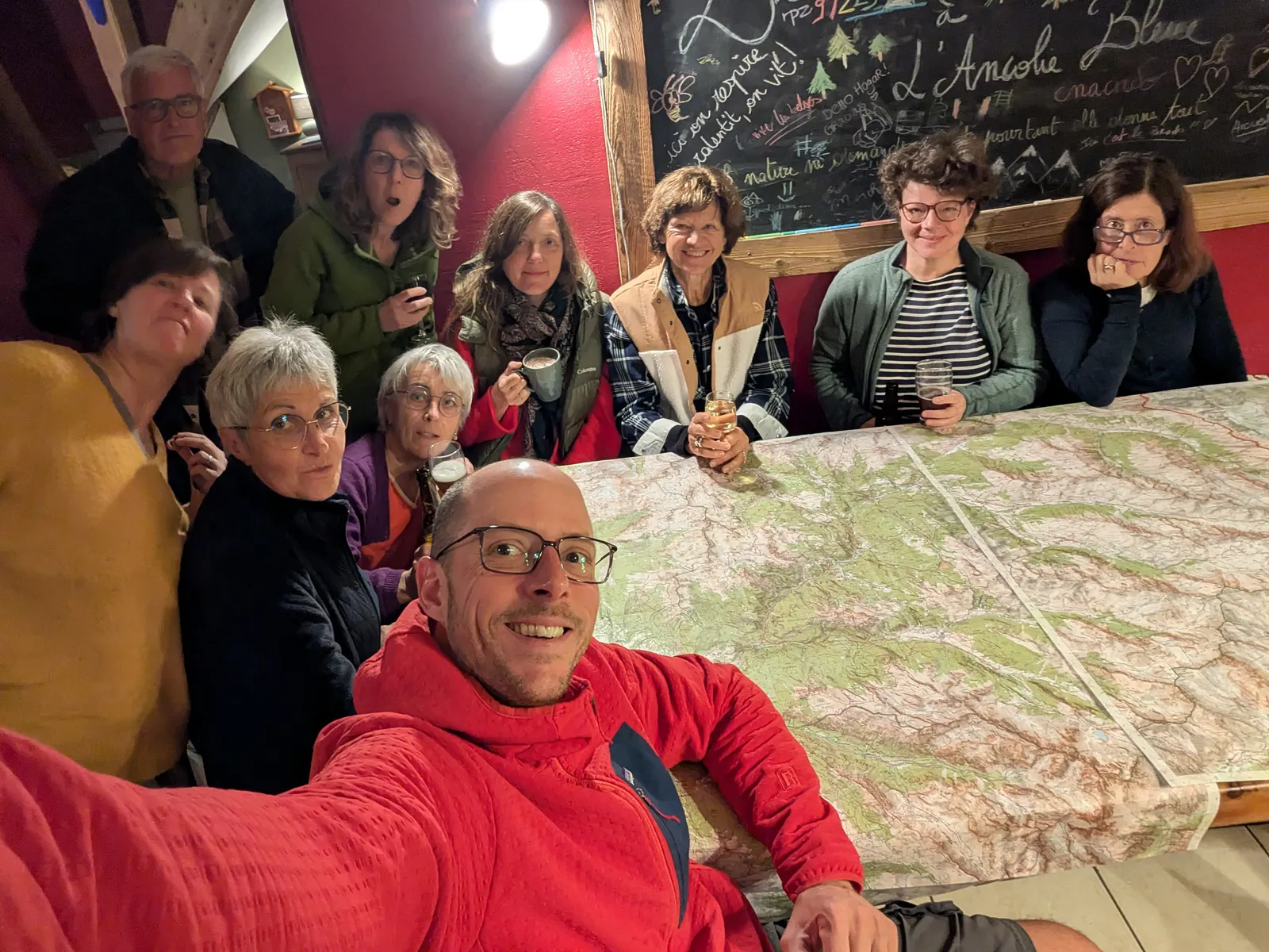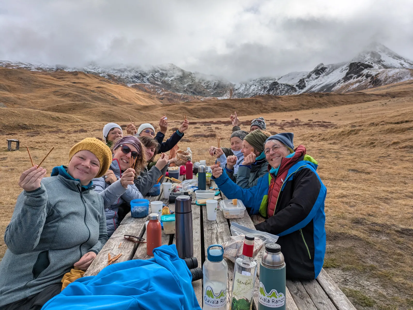 Aussi j’ai encore une fois eu le plaisir de retrouver plein de visages connus qui arrivaient des 4 coins de la France pour l’occasion : Nadine et Jean du Béarn, Chantal du Lot, Christine, Sara et Véro de Paname et Stella du Cantal. Mais aussi deux petites nouvelles dans la communauté Ouvala Rando que j’ai été ravi de rencontrer : Christine (la bretonne) et Cécile (la stéphanoise). Et au vu de notre connaissance commune (encore un grand merci à Marc pour la recommandation), ça ne pouvait que bien matcher…