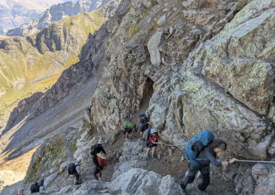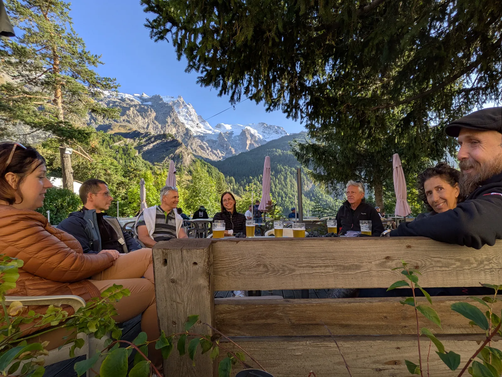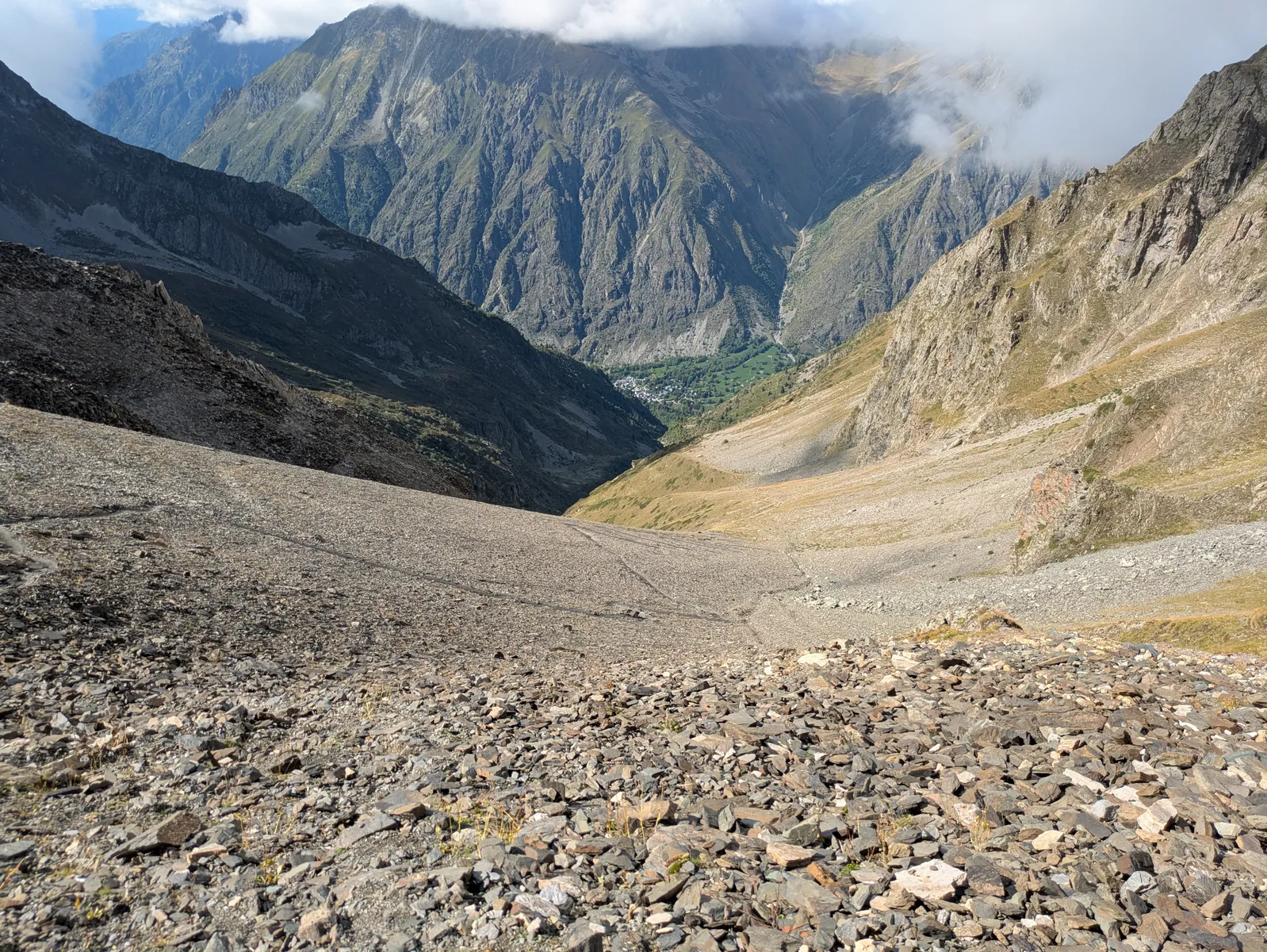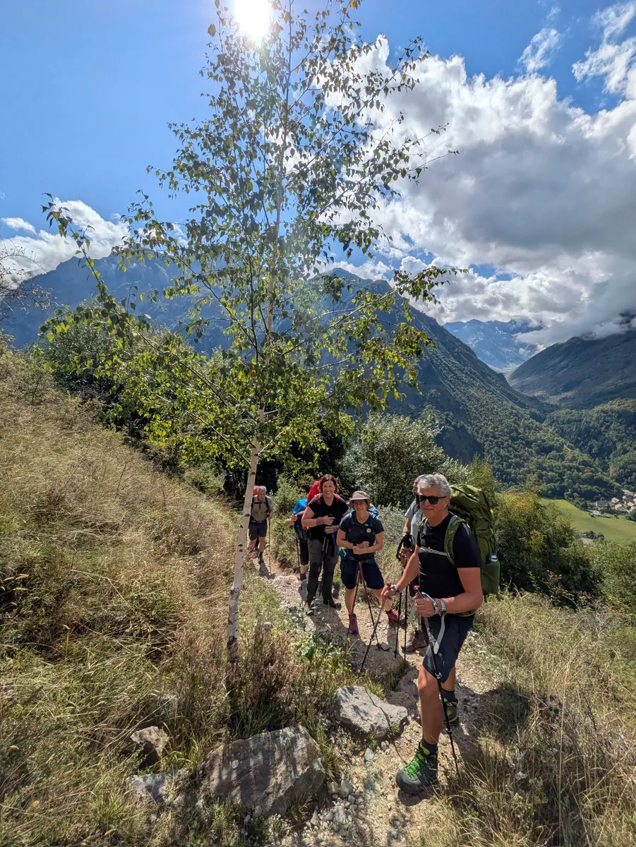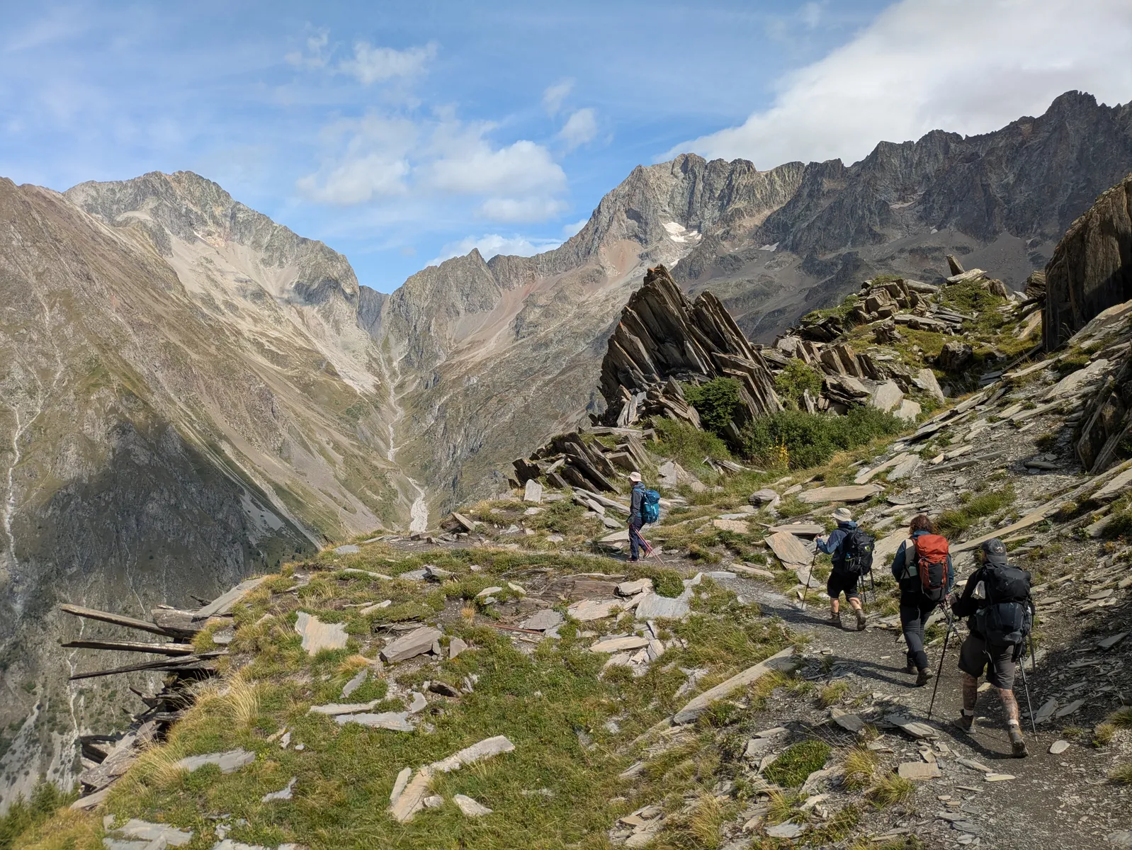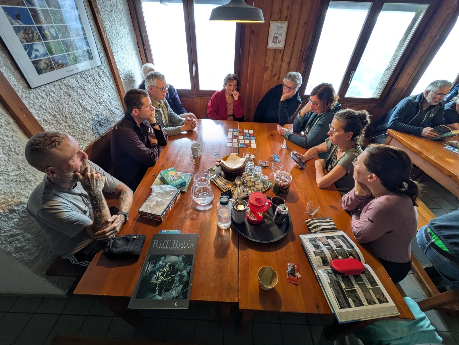 Quelques chiffres aussi pour illustrer notre périple : 9 jours de marche et autant d’hébergements visités, 3.8 kg de bretzels consommés, 170 km parcourus, 112 photos publiées sur le carnet (en ayant déjà fait un énorme tri dans les miennes et sans aller piocher dans celles partagées par certain·e·s hors du groupe WhatsApp), 11000 m gravis (D+), 10 randonneur·euse·s revenus sans encombre (et presque sans courbature ni ampoule 😉) à La Grave !