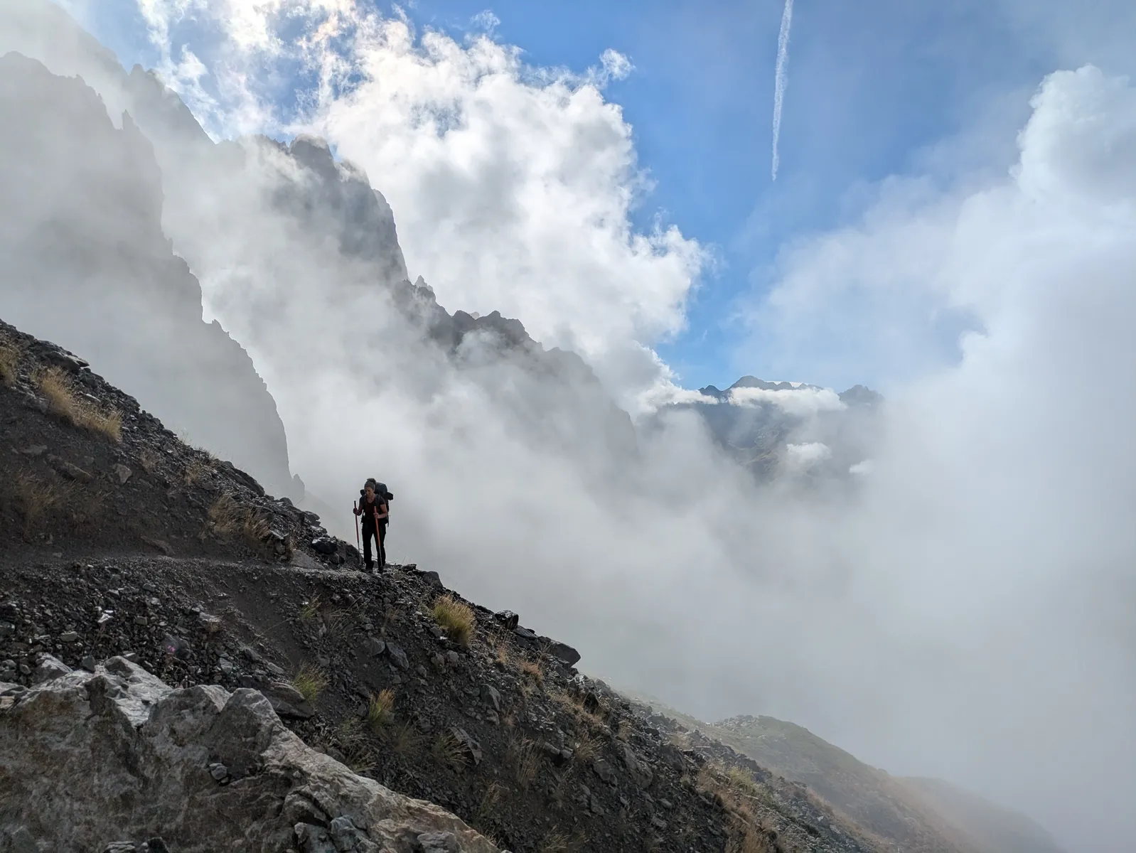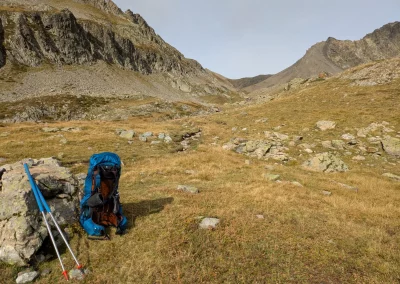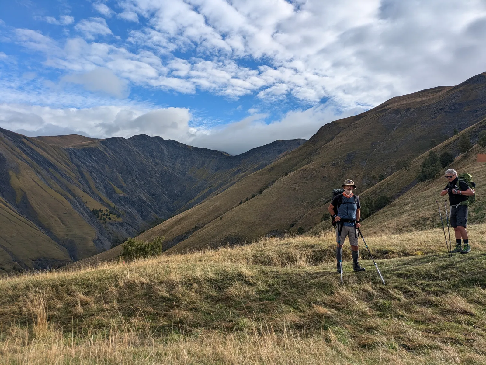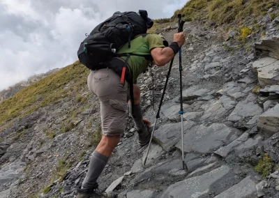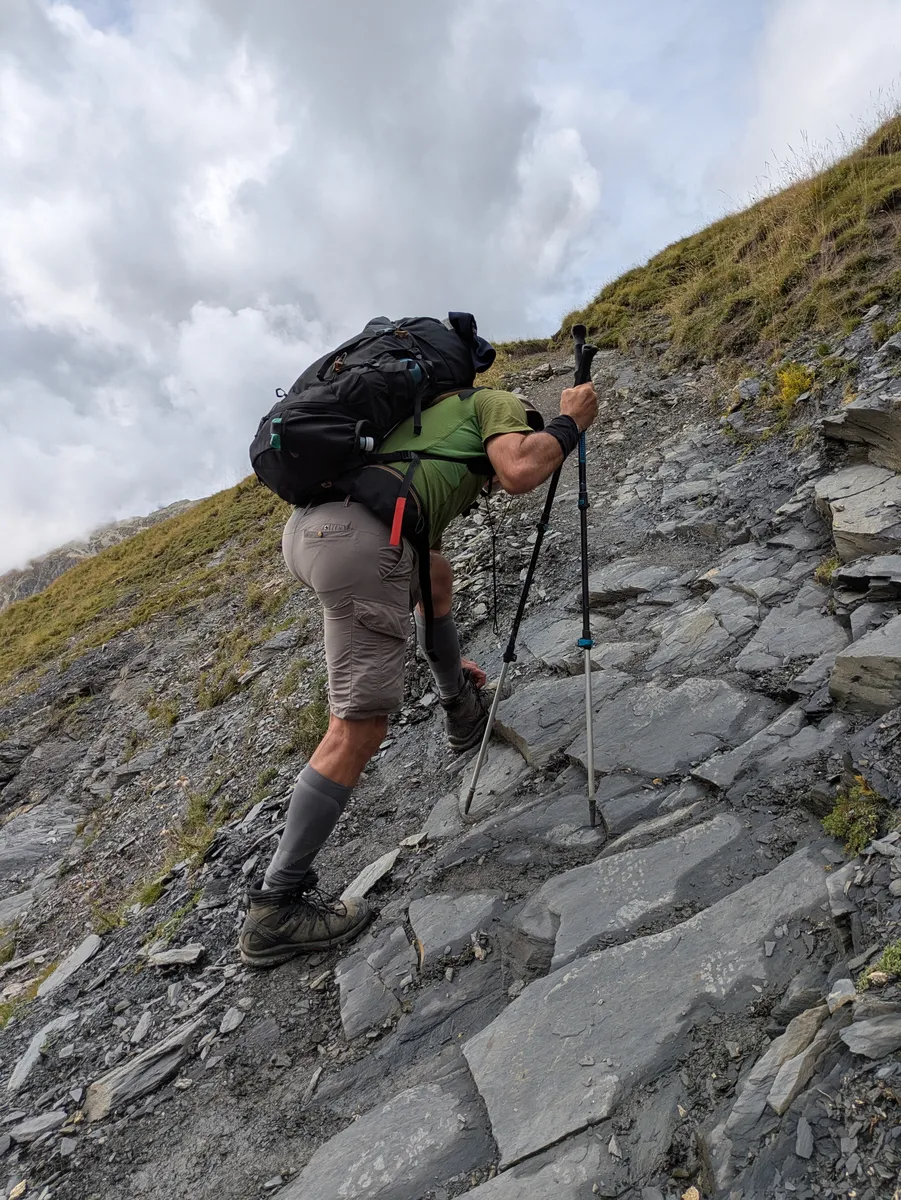 Enfin, on accueillait un petit nouveau dans la communauté Ouvala Rando, à savoir Henry-Pierre (ou HP pour les intimes dont nous fîmes rapidement partie). Venu sur recommandation de Marie (encore merci 🙏🏽) pour sa première randonnée itinérante en montagne. Au vu du trek envisagé (grosso-modo ce que je propose de plus dur…), j’avoue que je n’étais pas 100 % serein à prendre quelqu’un que je ne connaissais pas. Mais il s’était hyper bien préparé autant physiquement que pour son matériel (sac absolument nickel ce qui n’est pas facile quand on démarre…) et mes doutes ont été très rapidement levés…