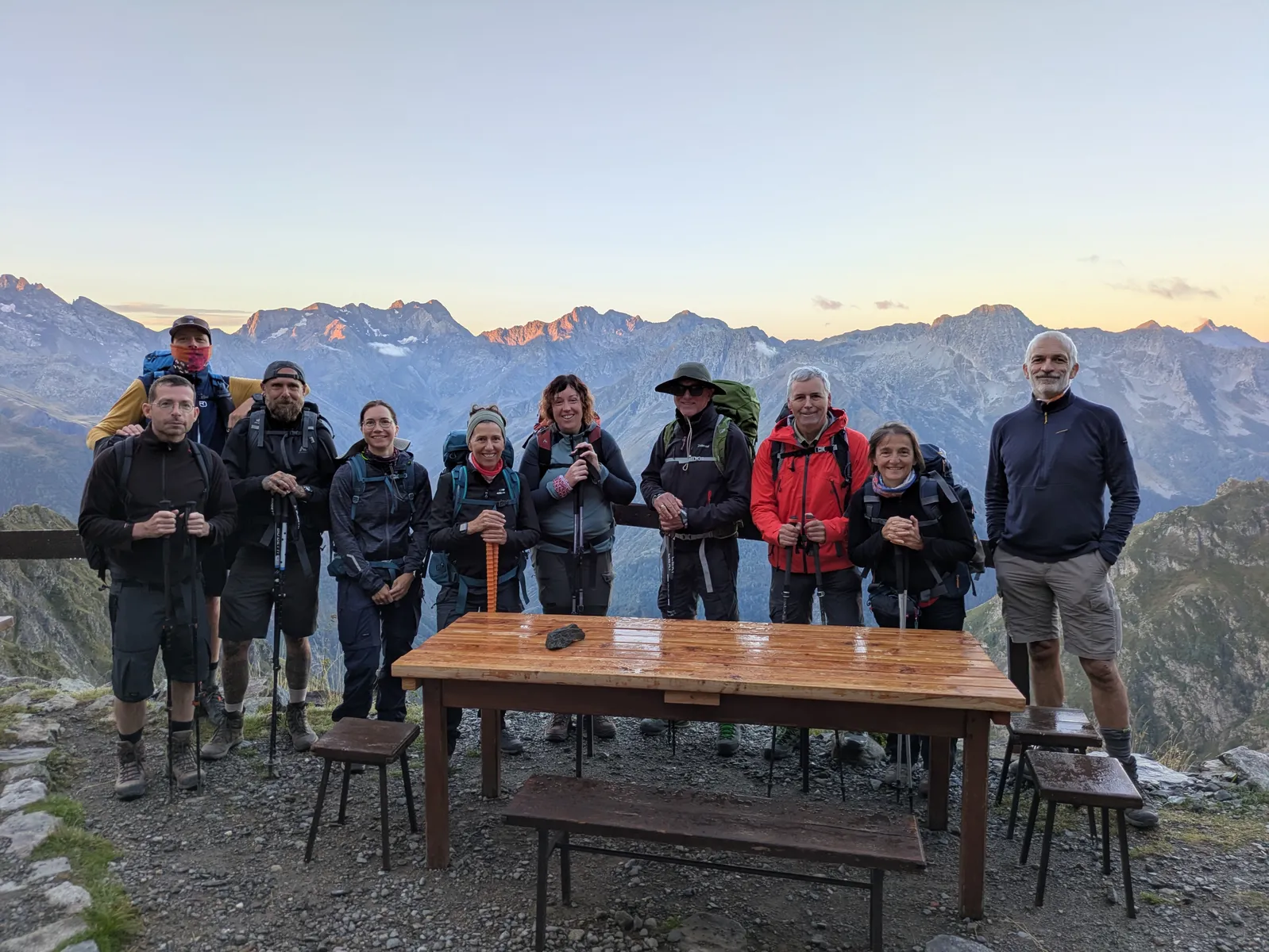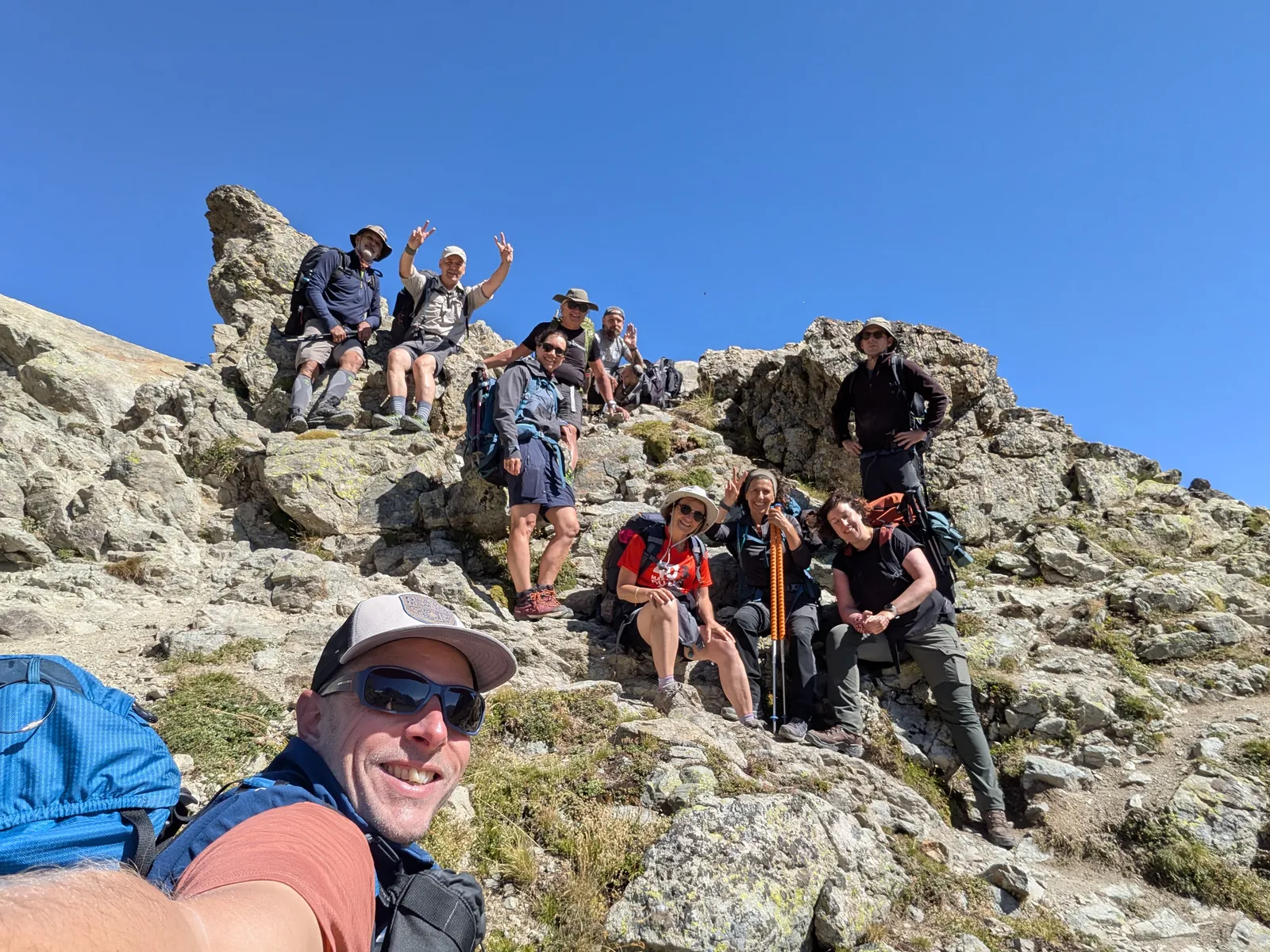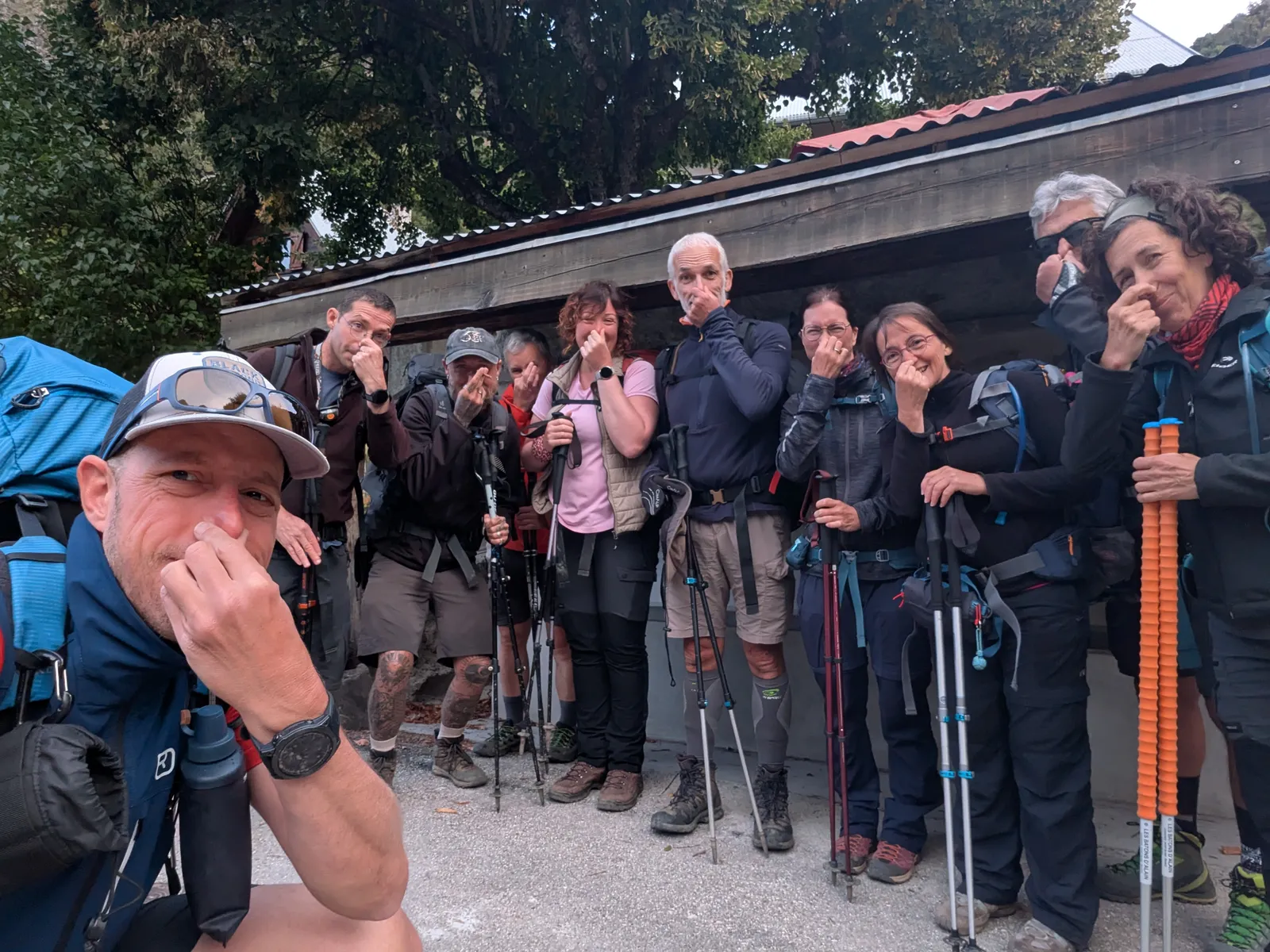 Le projet était ambitieux et il fallait un sacré groupe pour le mener à bien. Et pour être très clair : je n’avais aucun doute sur le fait que mes 9 inscrit·e·s seraient à la hauteur et pourraient faire le tour. Certes j’imaginais que ça serait dur sur certaines grosses étapes ou que l’enchainement pourrait finir par peser un peu. Et franchement je n’en ai même pas eu l’impression. J’ai même été bluffé par le rythme qu’on avait sur certaines montées. Des vraies machines à crapahuter…