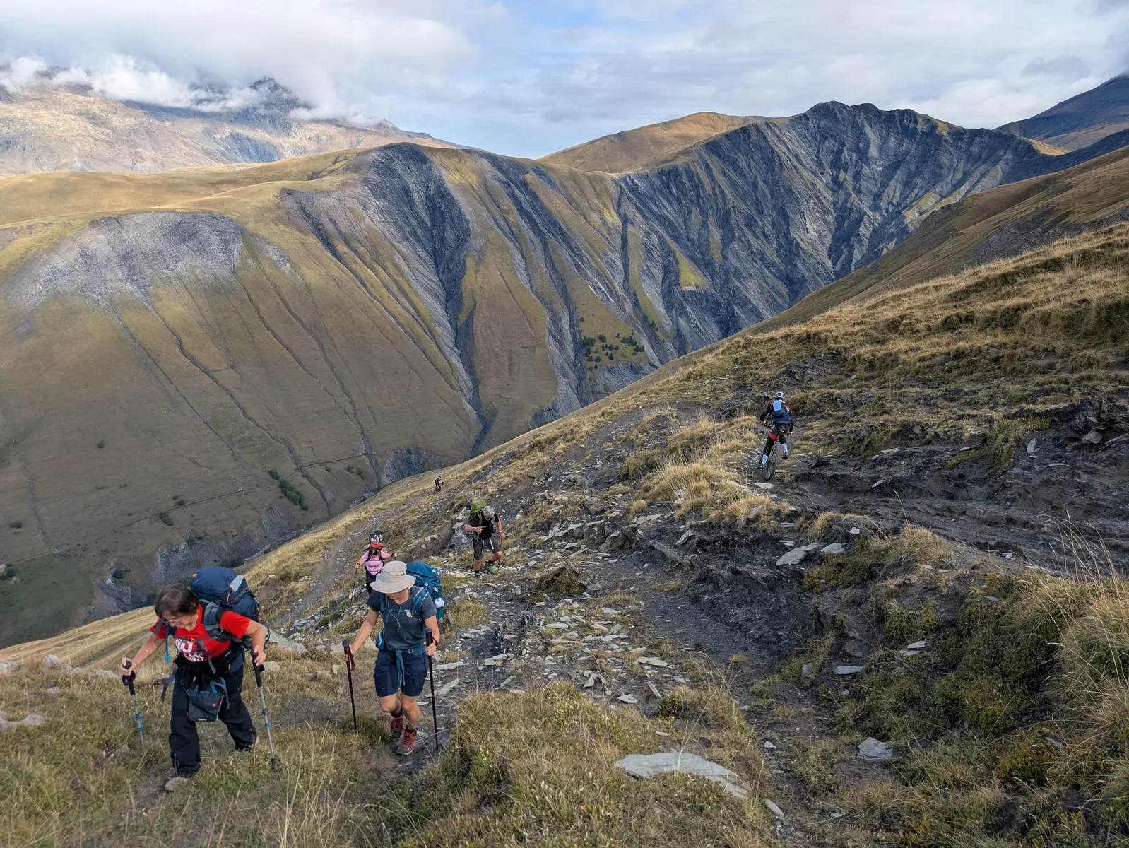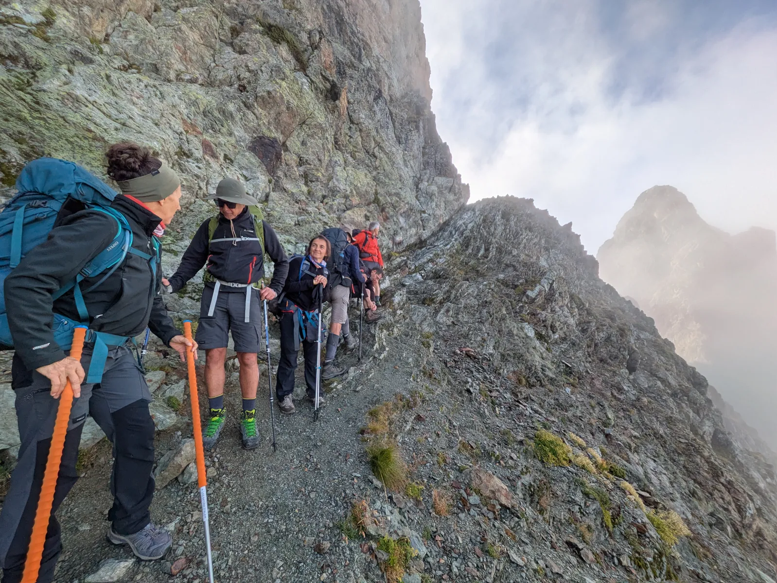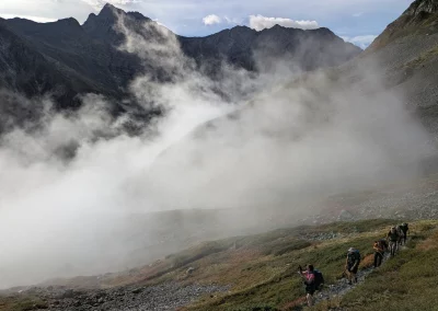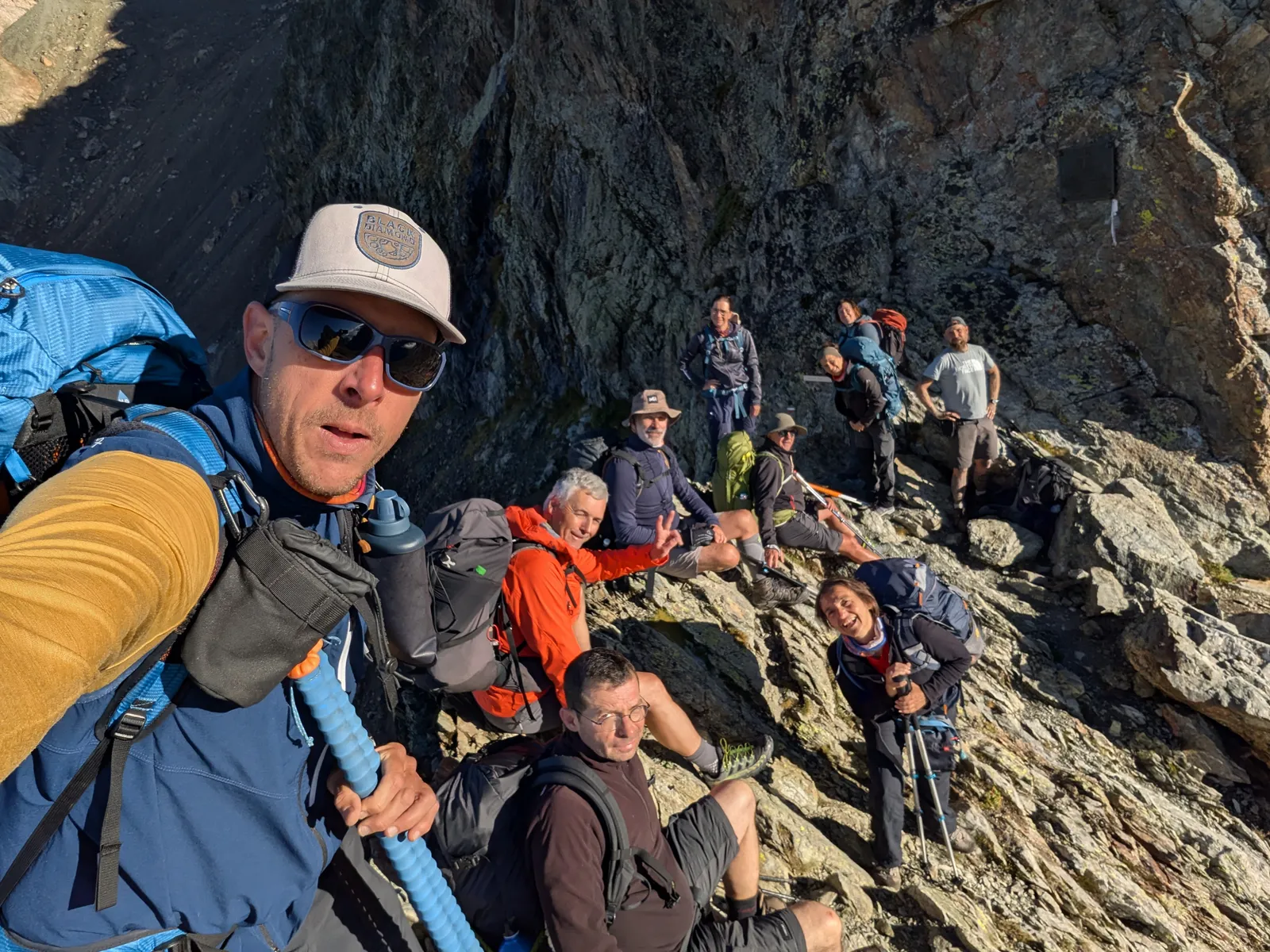 Le projet était ambitieux et il fallait un sacré groupe pour le mener à bien. Et pour être très clair : je n’avais aucun doute sur le fait que mes 9 inscrit·e·s seraient à la hauteur et pourraient faire le tour. Certes j’imaginais que ça serait dur sur certaines grosses étapes ou que l’enchainement pourrait finir par peser un peu. Et franchement je n’en ai même pas eu l’impression. J’ai même été bluffé par le rythme qu’on avait sur certaines montées. Des vraies machines à crapahuter…